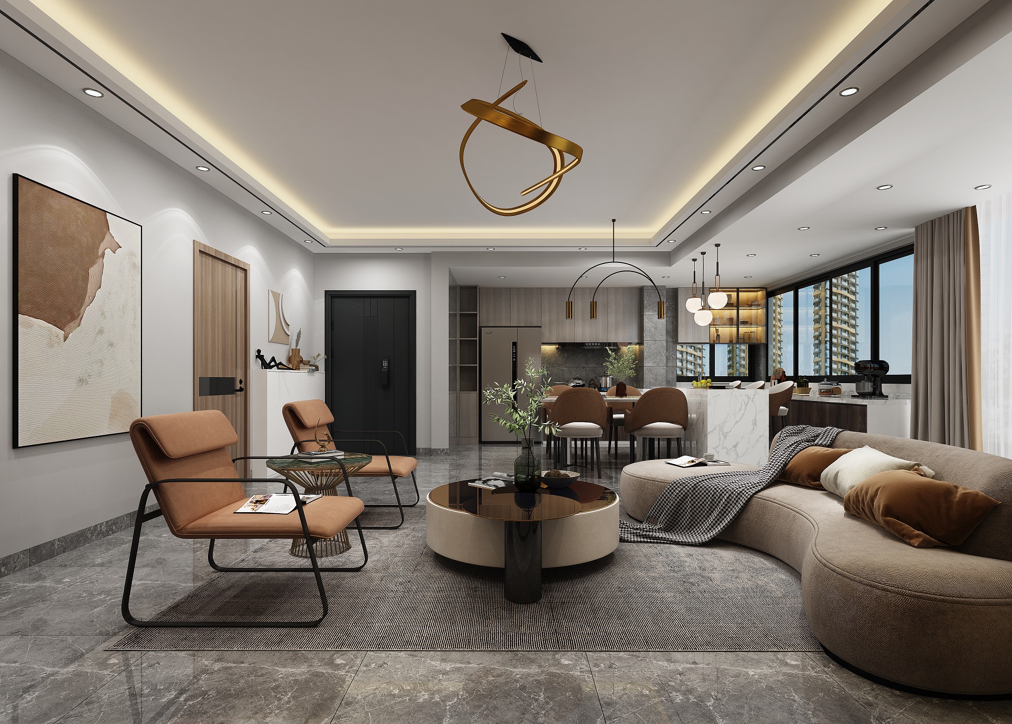南宁霖峰壹號现代风格装修设计案例128平米大横厅实景效果图