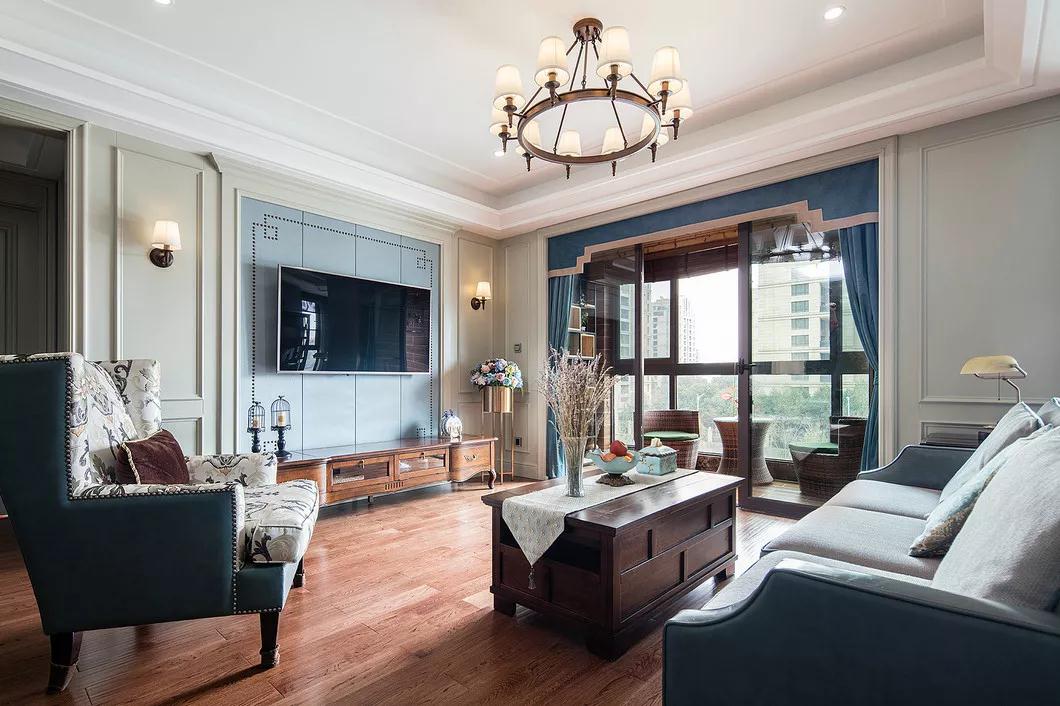 楚雄北浦家园美式风格装修设计案例133平米实景效果图