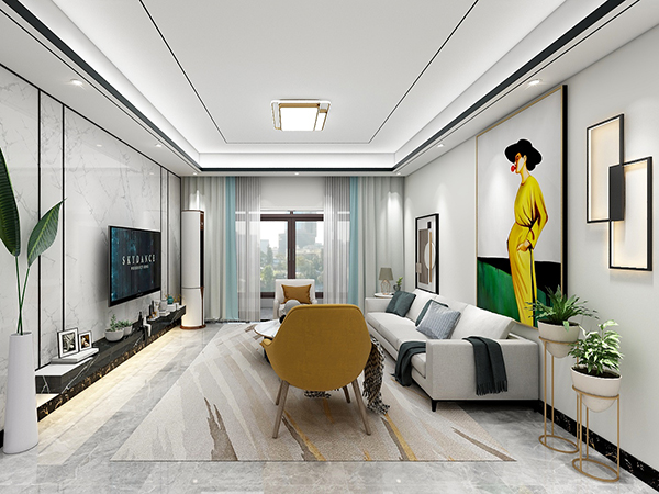 芜湖装修效果图-三潭音悦111平米装修案例__现代简约风格