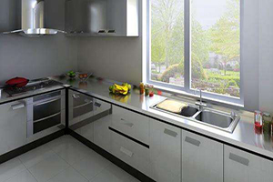 2020年10月21日-【铜陵创艺装饰cy1997】不锈钢台面外表很前卫,而且亮晶晶的不容易显脏;即使沾染油污,也容易清理,