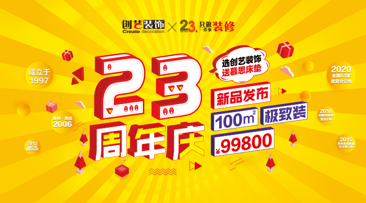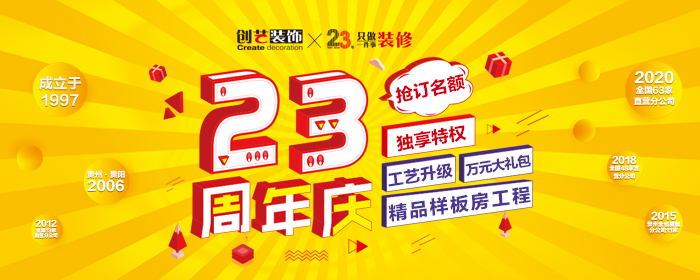 2020年9月15日-【遵义创艺装饰cy1997】创艺装饰23周年,携手全国41城同庆,我们准备了一些小小的心意,馈赠新朋老